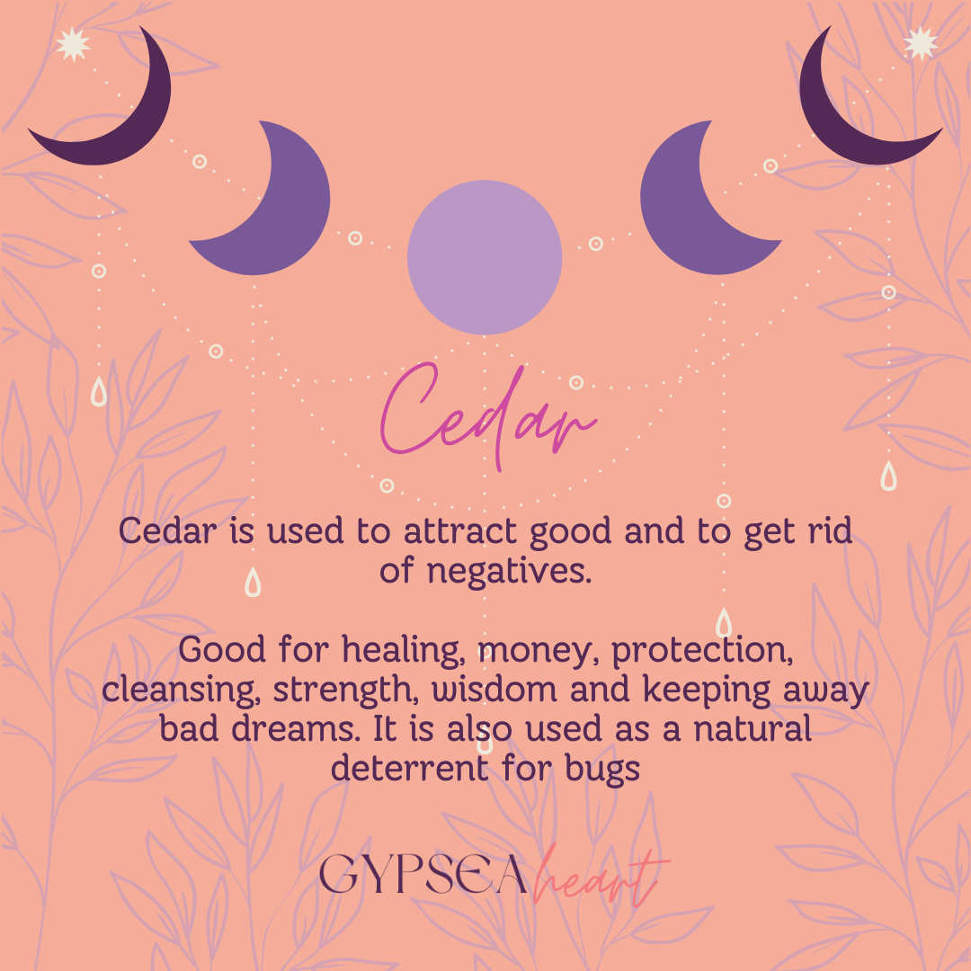 Cedar is used to attract good and to get rid of negatives.